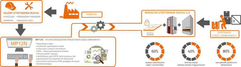 Dobra organizacja procesów składowania w działach Utrzymanie Ruchu to podstawa. Zoptymalizowane magazynowanie części zamiennych i narzędzi pozwala na znaczne zwiększenie efektywności. Krokiem do uproszczenia procesów logistycznych w firmie jest wdrożenie regałów karuzelowych Rotomat i regałów windowych Lean-Lift.